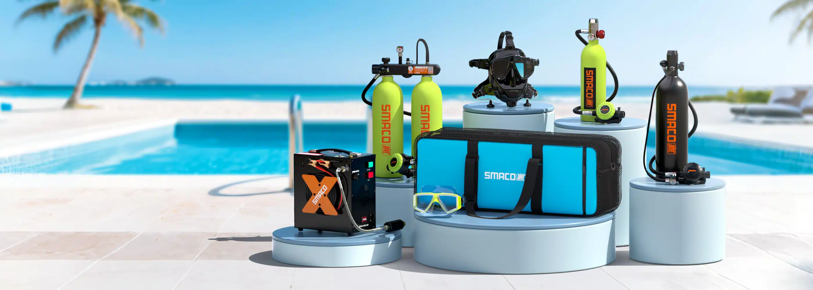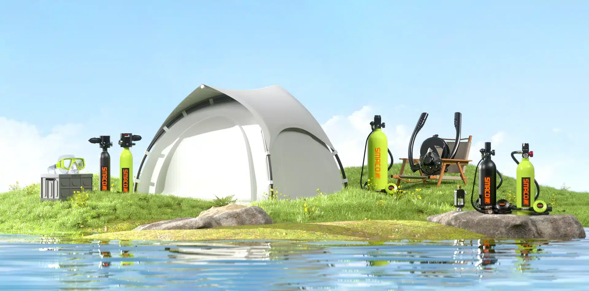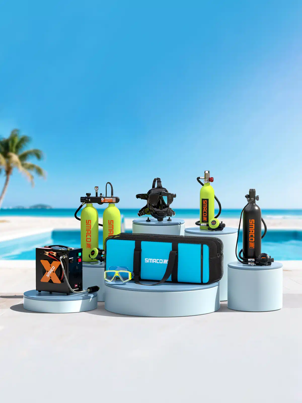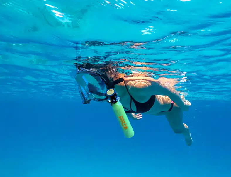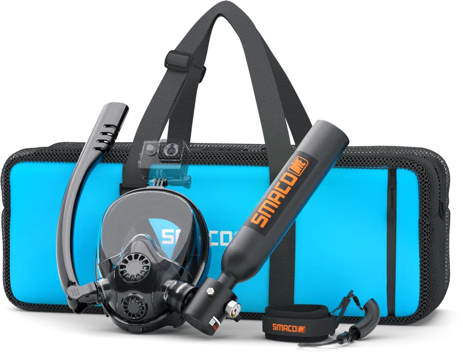 The SMACO M8068 combines a full-face snorkel mask with a compact 0.5L mini diving tank—