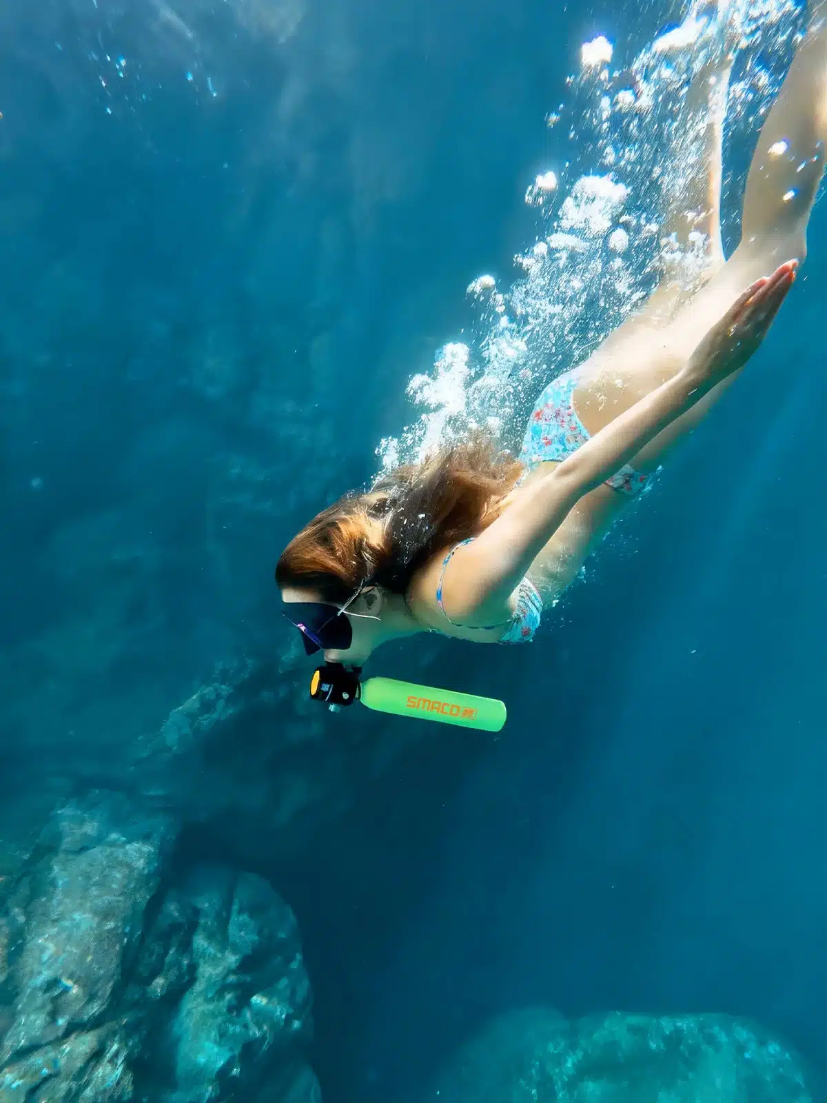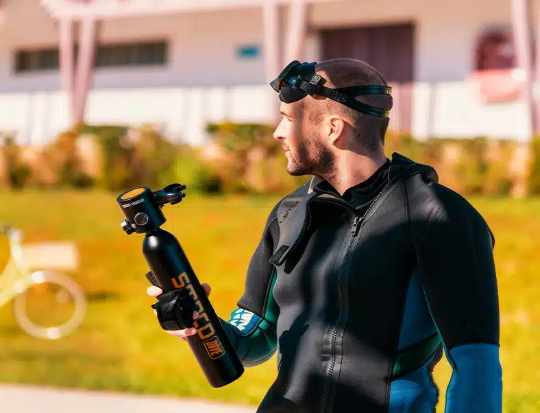 Up to 25 minutes of underwater freedom. A portable & refillable mini