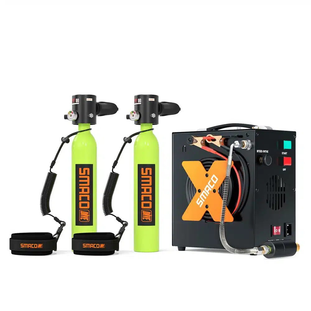 SMACO S300 is a compact, portable and refillable diving solution with up to 10 minutes of dive time. Ideal for underwater exploration, snorkeling, diving, emergency rescue, and more. Features include a safety-enhanced explosion-proof device, upgraded breathing valve, and 4 easy inflation methods. Lightweight, airplane-approved, and perfect for your travel.