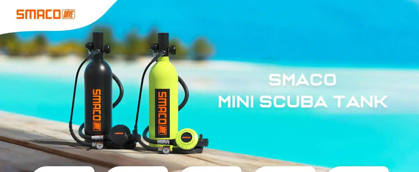 - SMACO Air Compressor. It allows you to fill your 1 L diving tank by yourself without any effort, in about 26 minutes.