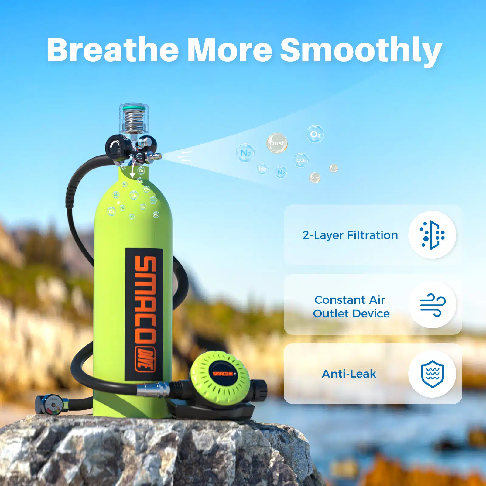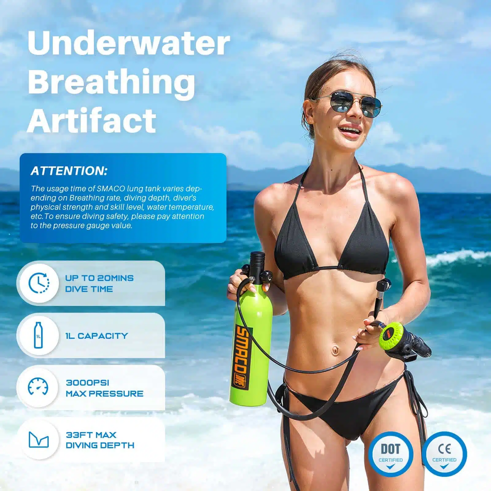 SMACO S400 PRO has a capacity of 1L and can provide up to 20 minutes of diving time.