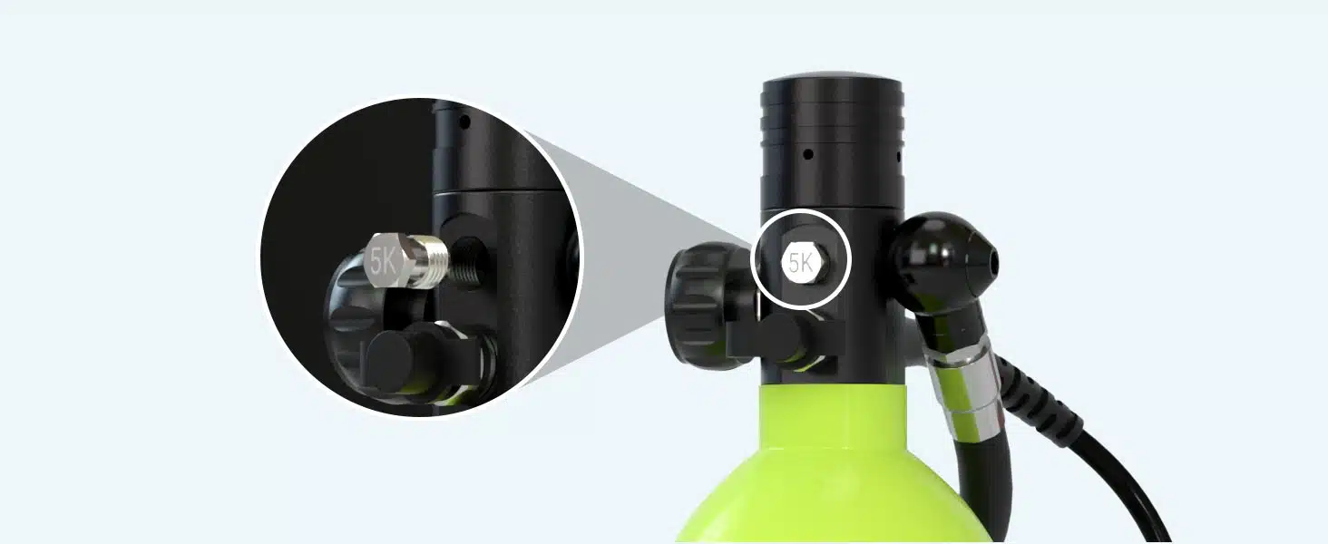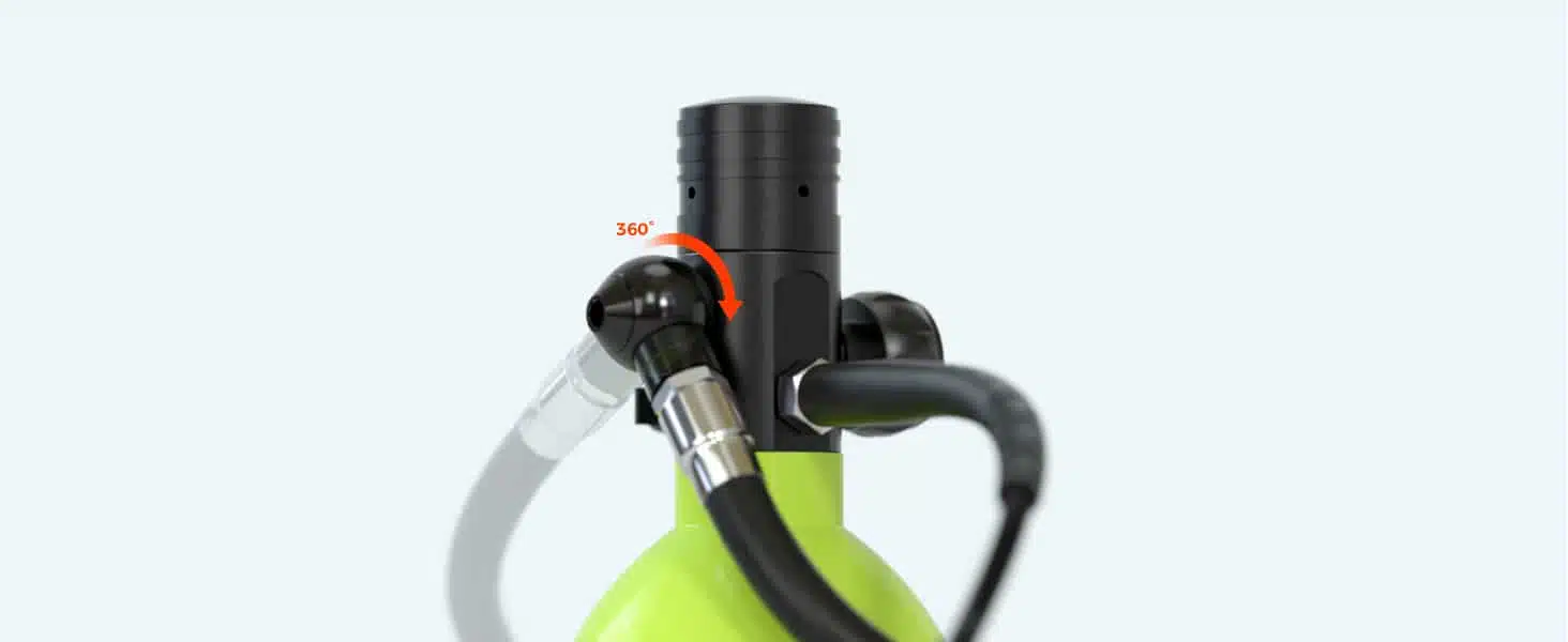 S400 PRO 1-liter mini scuba tank uses an extension tube to connect to the pressure gauge, which is more convenient for us to check the pressure gauge when diving. At the same time, the connection between the medium-pressure air hose and the first-stage regulator supports 360° rotation, adapting to any posture underwater