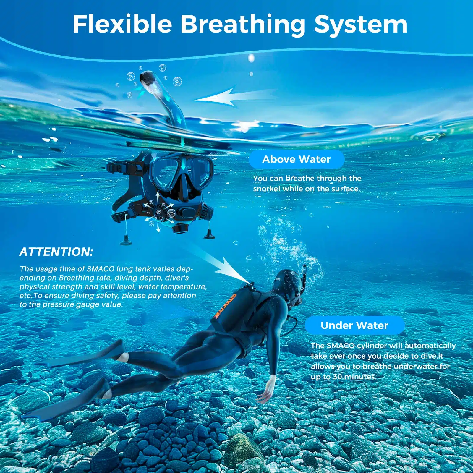 Yes, the M8058C full-face snorkel mask works perfectly with SMACO 1L, 2L, and 4L mini scuba tanks, and it’s also compatible with other standard scuba tanks.