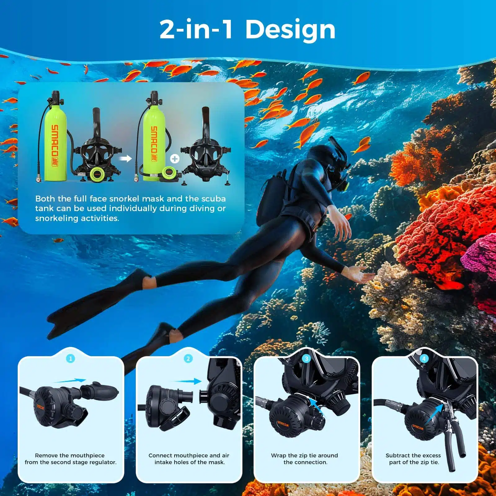Whether you’re exploring coral reefs, snorkeling off a boat, or diving for fun in a local cove, this portable dive kit offers the freedom to experience the underwater world—on your terms.