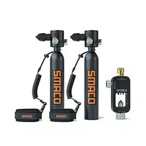 Very good mini scuba tank. I dived first time last year and since then wanted to try again and have the same experience. First, before buying expensive equipment I wanted to try something cheaper and smaller which would fit in my car. I browsed a lot and came across to this smaco brand mini scuba tank. Decided to buy and give a try with my buddy who is professional diver. So far experience was excellent, my first dive was 15 minute. It held very well, didn’t feel uncomfortable or unsafe under the water. I am going to give a try again, let’s see how it will work.