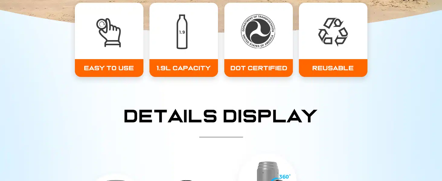 A product that has been rigorously inspected to provide you with the utmost in safety and quality. It boasts DOT, CE and other gas cylinder inspection reports from the United States and Europe, so you can rely on its superior performance.
