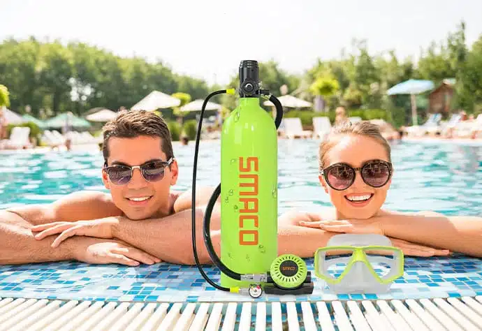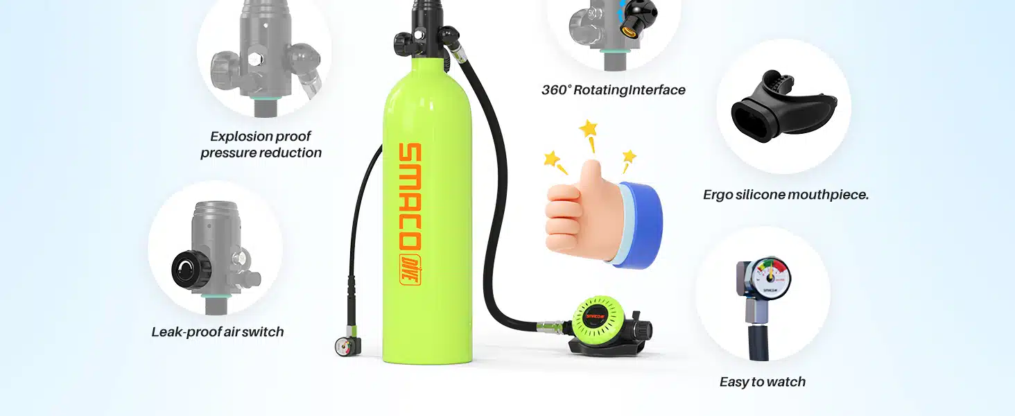 SMACO mini scuba tank is the gas cylinder that you can fill yourself that allows you to breathe up to 30 minutes!