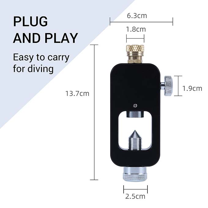 - Standard SCUBA Yoke Adapter Pocket, compatible with standard K-Valve, J-Valve and H-Valve.